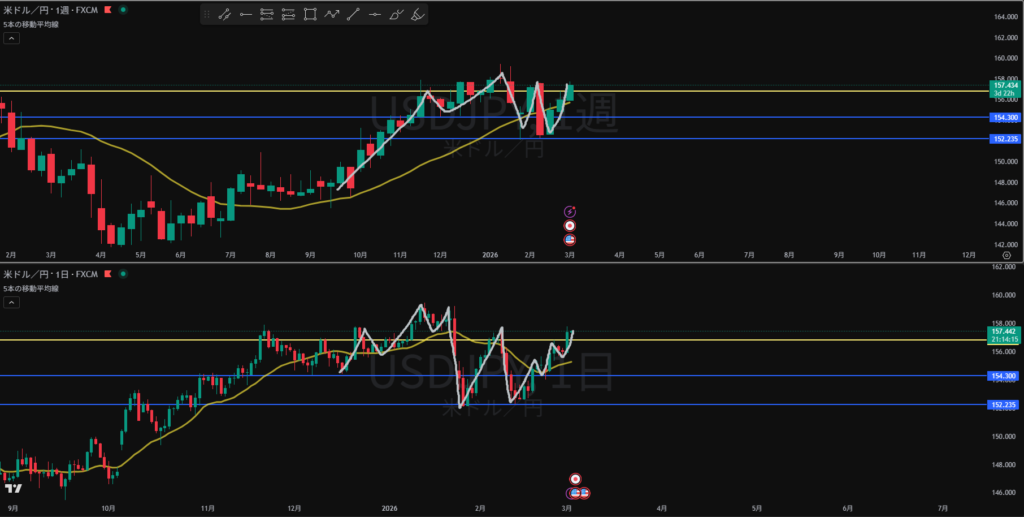方向上 日足高値同時抜けの調整 オレンジ線下に押し目買い勢力