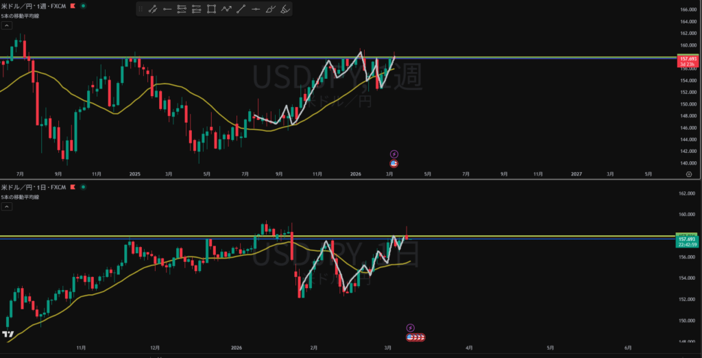 方向上 トレンド継続 黄色線下に押し目買い勢力