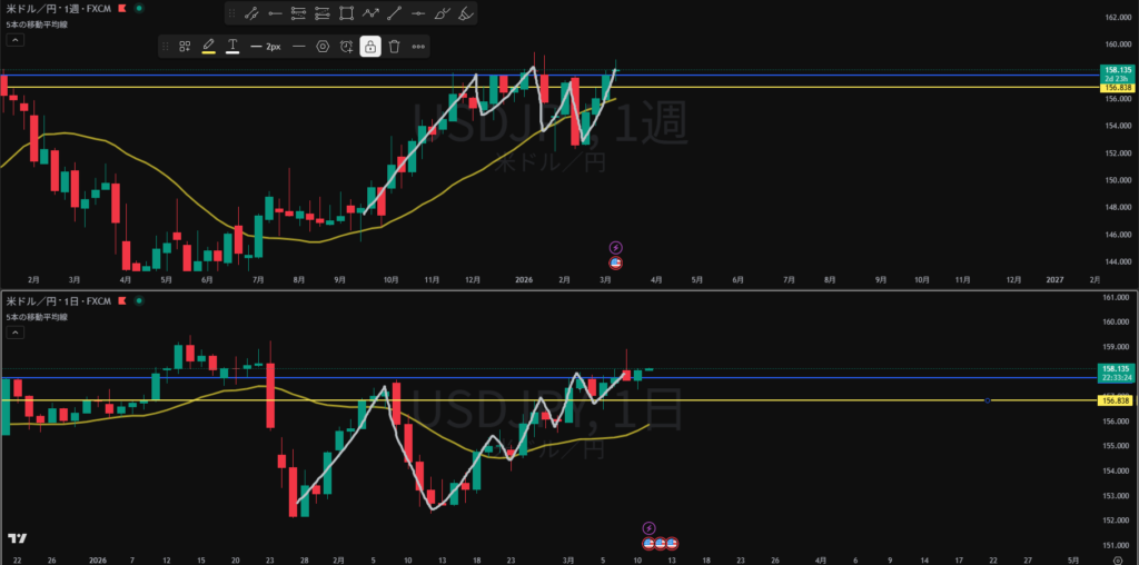 MA方向横 ロウソク実体で上抜け 買い支えとして機能