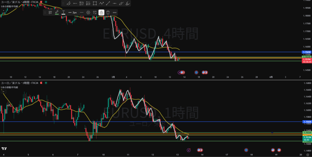 方向下 オレンジ線の上に売り抑え勢力 オレンジ線で止められやすい