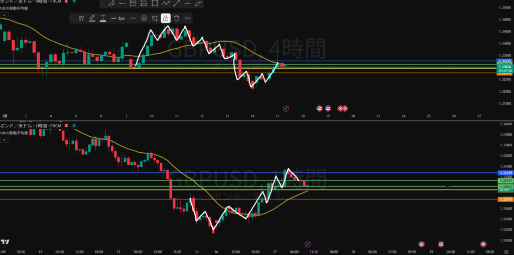 方向上 トレンド転換シグナル 調整中 オレンジ線野下に押し目買い勢力