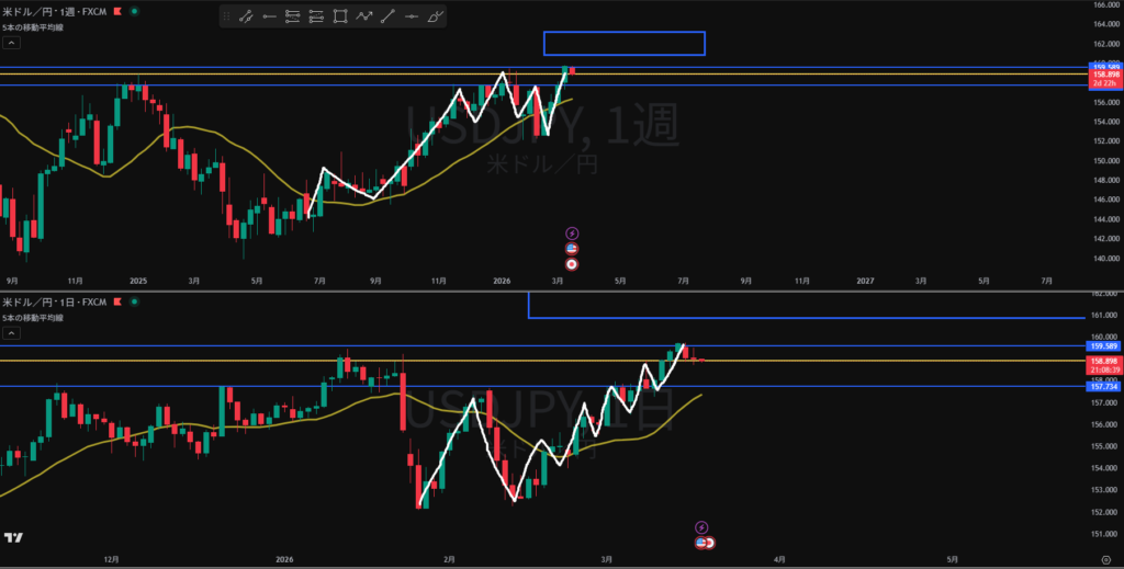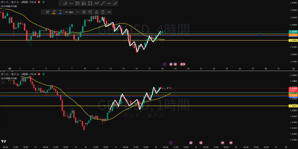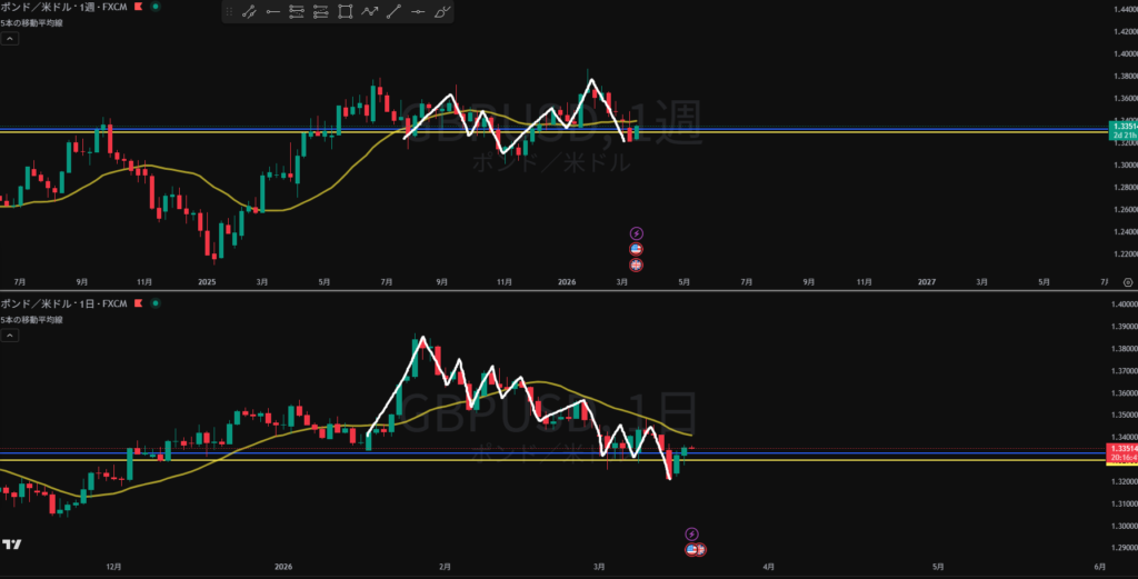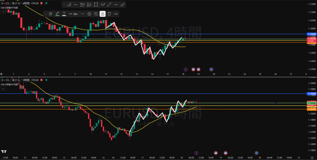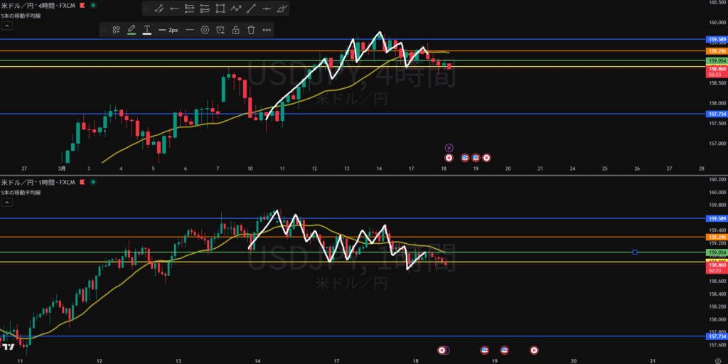 週足、日足戻り売り勢力あり 日足の戻り売り狙い4H, 1HのTTS待ち