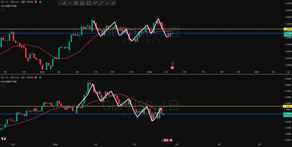 MA方向下 売り抑えとして機能