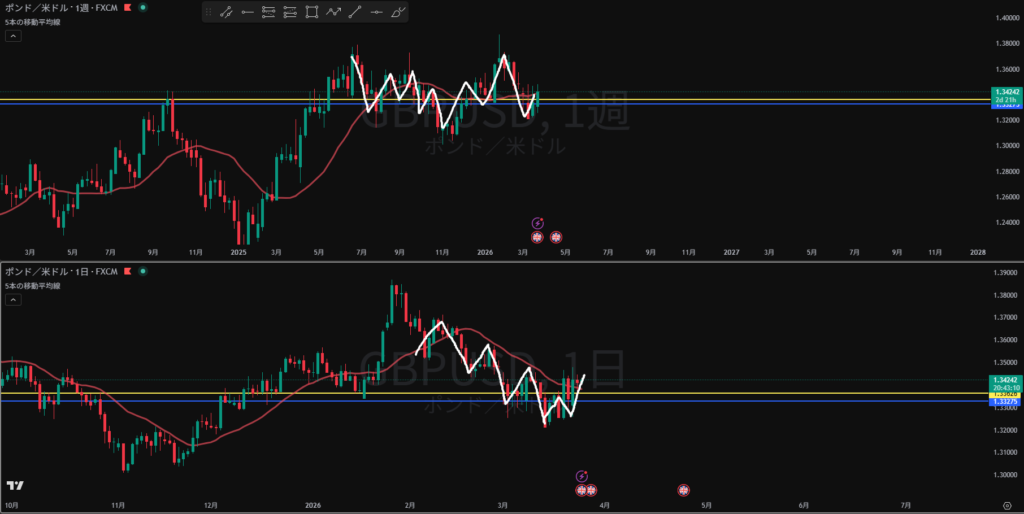 方向下 調整中 オレンジ線上に売り抑え勢力