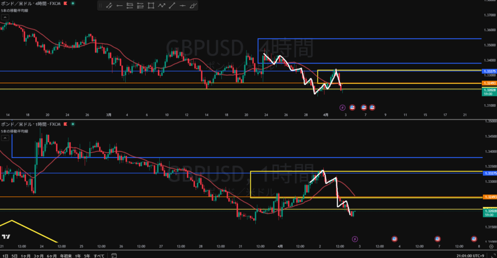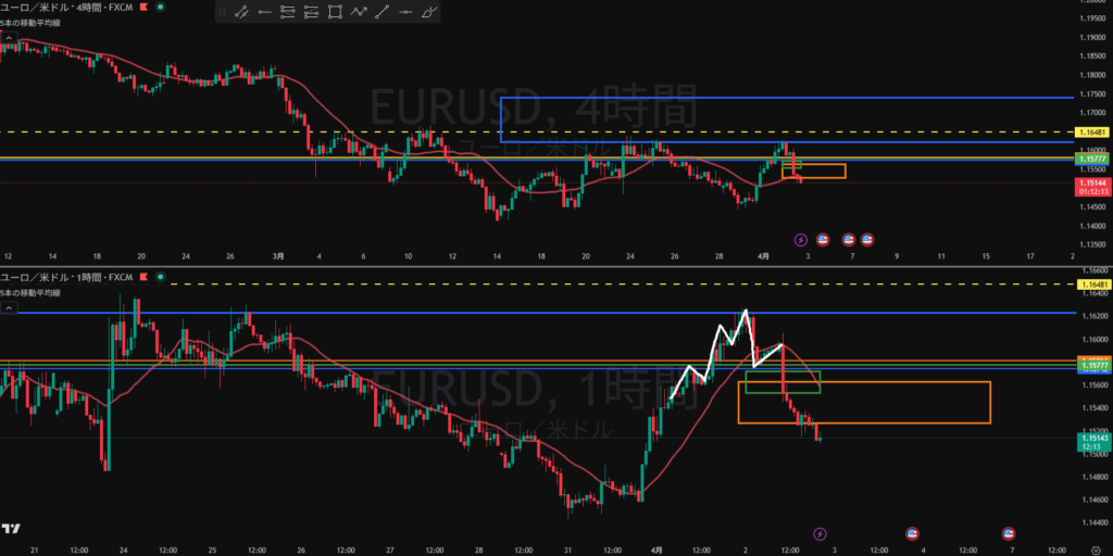 日足の戻し局面 4H戻り売りを検討