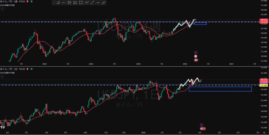週足、日足基本上目線 4Hも上昇TTSからの押し目 MA水平から上昇に転じようとしている