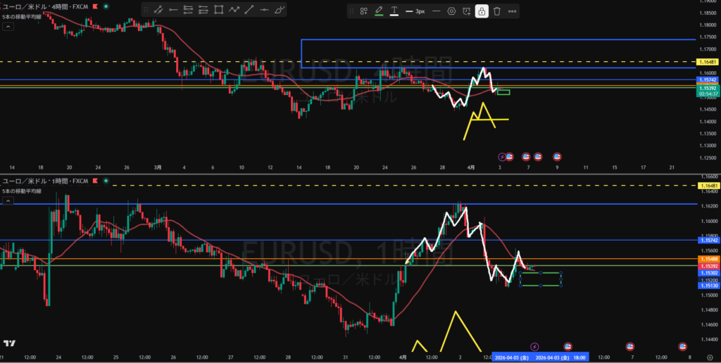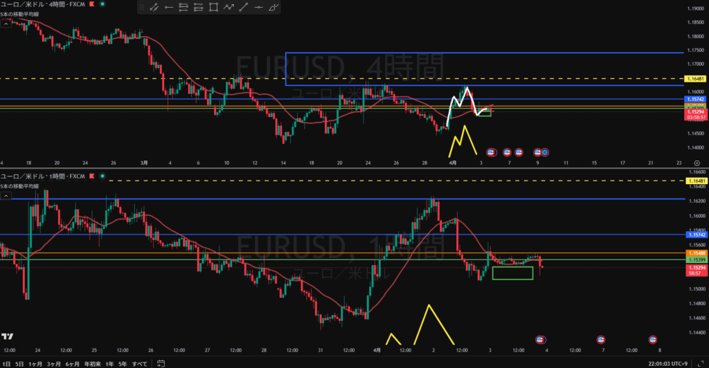結果的に朝に書いた4Hの黄色ダウが効いている感じだが結果論か?