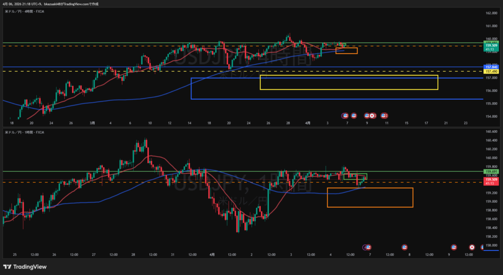 4H現時点で売り抑え効いている 直近安値切りそろえてるのも気になる