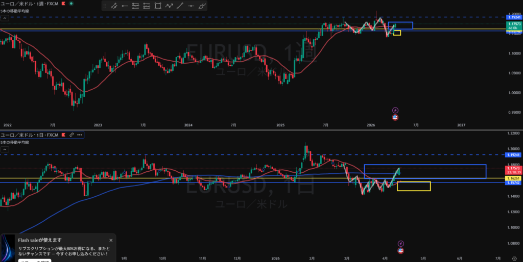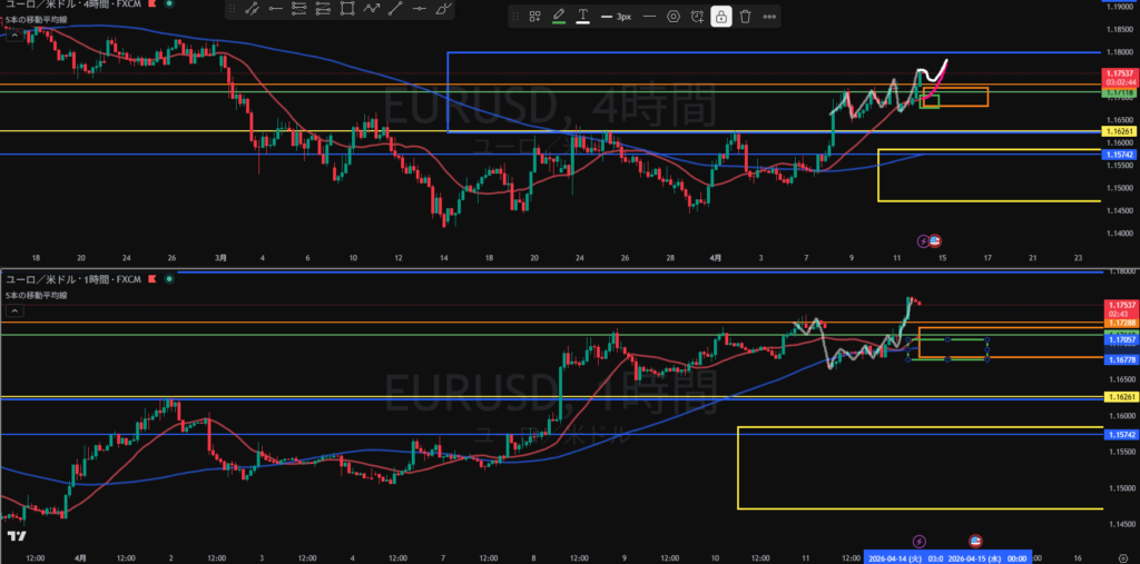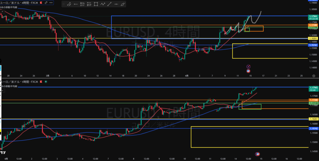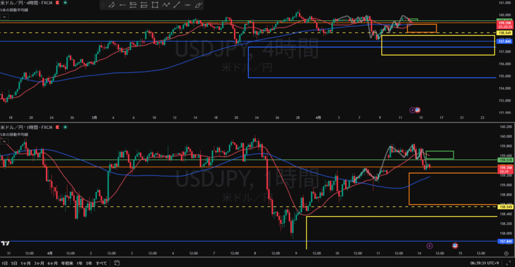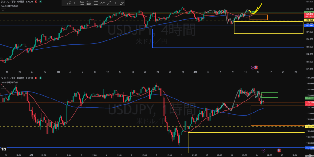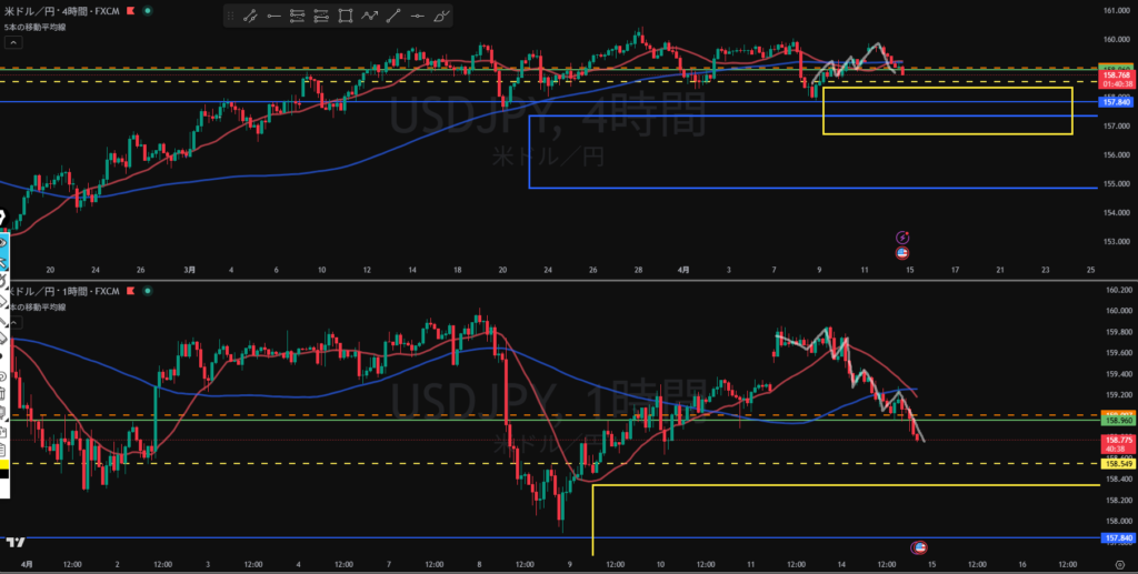 4H下落の波の途中になったとしても日足買い支えエリアまで距離はない