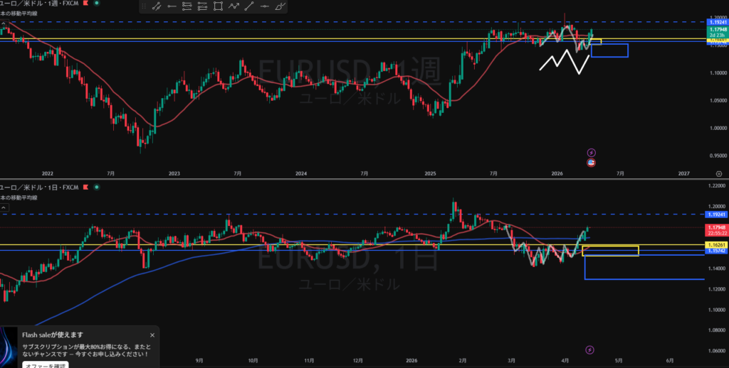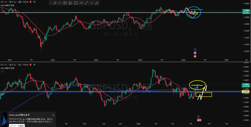 ここから下位足でエントリーポイントはどうなるのか少しずつ理解していこうと思う!
