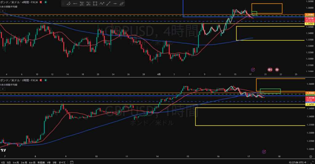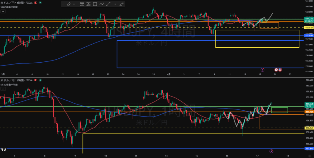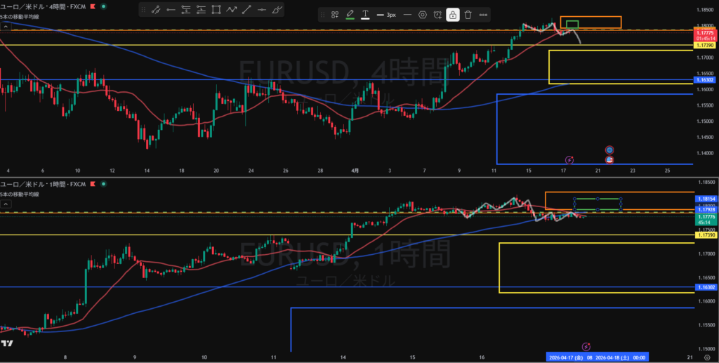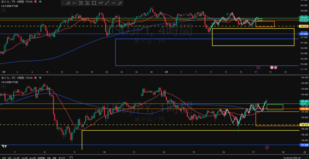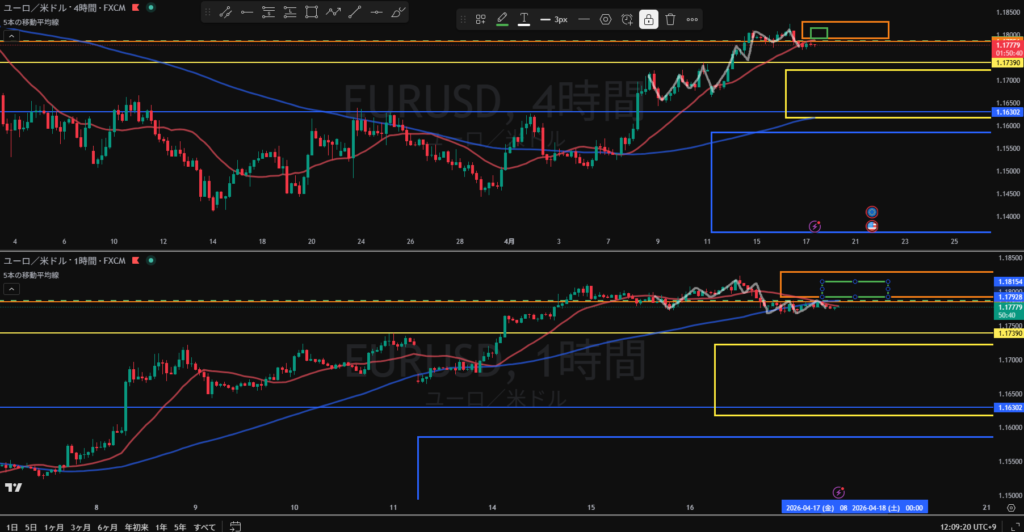 日足MAで売り抑えもある 4H押し目買い待ちだが週末ニューヨーク時間あたりか?